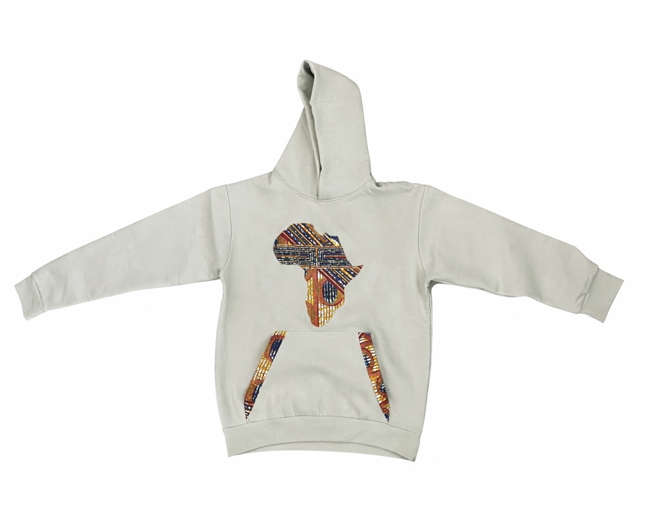 Stay warm while making a bold cultural statement with our African Print Hoodie, designed for both style and winter comfort. This premium beige hoodie features a striking Africa-shaped Ankara print on the chest, complemented by matching patterned accents on the front pocket for a standout finish.
